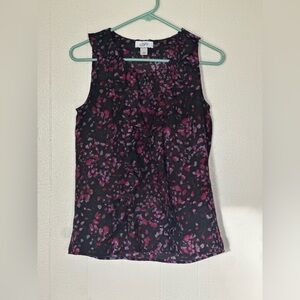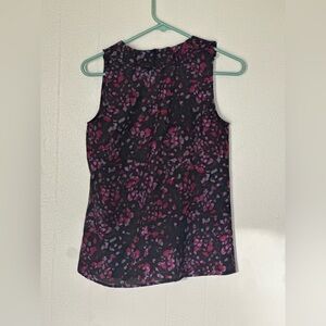 LOFT Black Pink Floral Sleeveless Blouse XS NWOT Fitted Tank Top