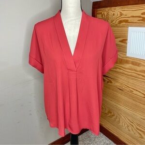 Lulus Rise to the Top Rust Red V-Neck Short Sleeve Top Blouse Medium