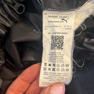 Chic black hoodie with glossy accents. Adjustable drawstring hood and hem. Puma logo on front.