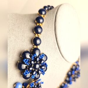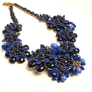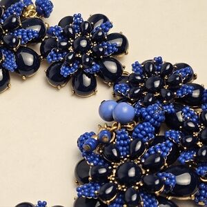 [J. CREW] Gardenia Blue Beaded Chunky Statment Floral Asymmetrical Necklace