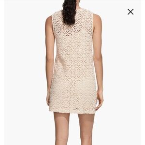 Cotton blend fabric. Short design. Straight Design. Floral design. Round neck. Sleeveless. Inner lining. No Fastening. Crochet fabric.