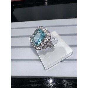 Aquamarine Cubic Zirconia White Crystal Ring Size 7