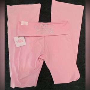 Victoria’s Secret PINK x LoveShackFancy collab pink flare pants. Comfortable and trendy. Ideal for casual outings.
