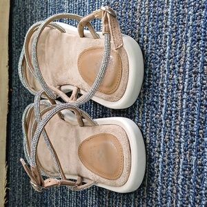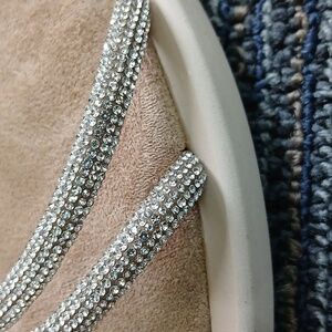 rhinestones along the strap. extra comfot with memory foam soft suede material to place your feet on