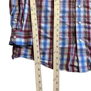 Panhandle Pearl Snap Shirt Mens XL Blue Red Plaid Long Sleeve Western Cowboy