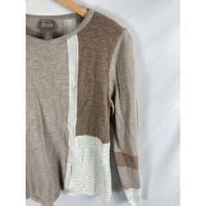 Elevate your wardrobe with this stylish Chico's color block knit sweater. Perfect for adding a pop of color and warmth to any outfit. This sweater is in excellent condition and ready for its new home!