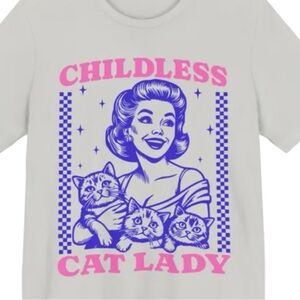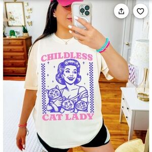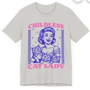 Bella Canvas Cream Childless Cat Lady T-Shirt with Purple and Pink Graphics