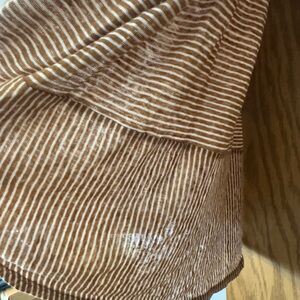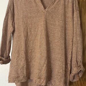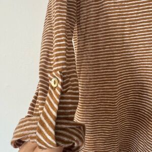 Chic Tan & Cream striped top with a relaxed fit. Tunic style Slits on the side Ideal for casual wear. Great Layering piece or Beachy vibes.