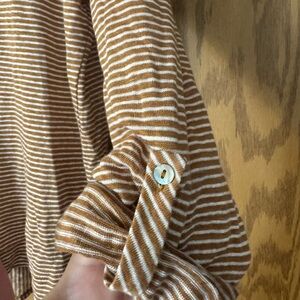 C & C Striped Hoodie Tan & Cream Women's Top, Roll Tab Sleeves. Size Large