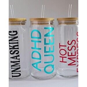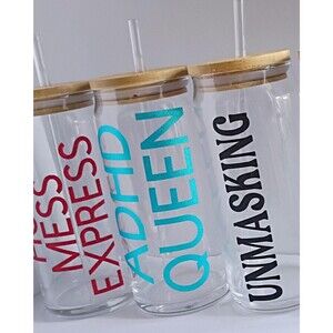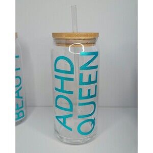 The “ADHD Queen” 20oz glass cup is perfect for caffeine lovers with busy minds and bold personalities. A fun, self-aware design celebrating ADHD humor and everyday survival drinks.