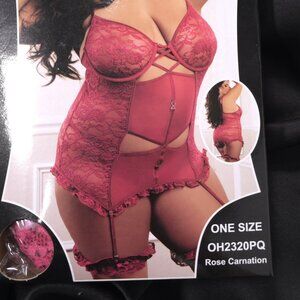 G World Intimates OH2320PQ Rose Carnation Lace Garter Dress 3pc Set – Plus One Size