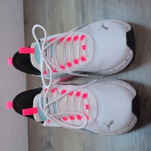 PUMA Amplifier Speckle Sneakers Running Athletic Shoes White Pink Aqua Size 8