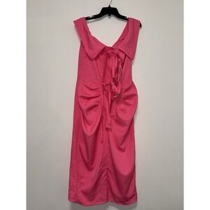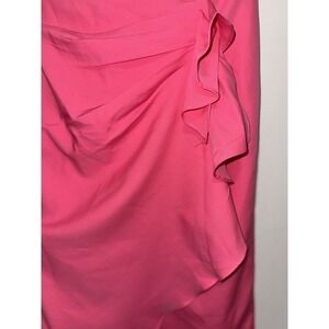This hot pink off shoulder wrap dress is perfect for a party or cocktail event. The midi knee length design, ruffle accents, and tie closure add a touch of elegance to the dress. The bold pink color and off the shoulder neckline make it a stylish choice for women looking to make a statement. Made by the brand Fashion, this size 12 dress is sure to turn heads and make you stand out from the crowd.