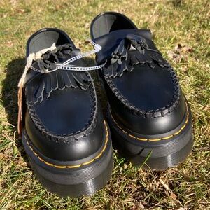 Dr. Martens Adrian Quad Bex Smooth Black Leather Tassel Fringe Platform Loafers