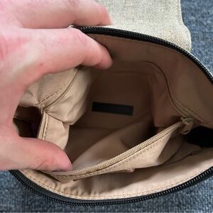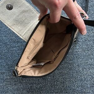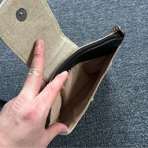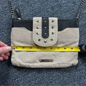 Nine West Black Beige Tweed Faux Leather Strap Crossbody Handbag