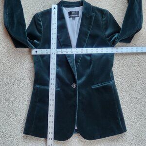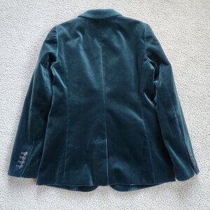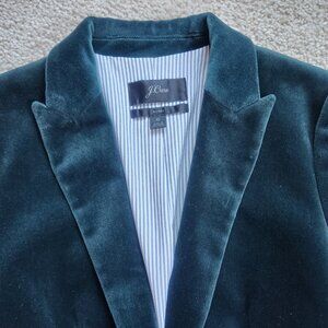 One of my favorite blazers from J. Crew--the velvet Parke. It's a thick, plush, cotton velvet. This one is unworn and immaculate. Tacking stitch is in place. No flaws. No pet hair. No odor.