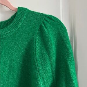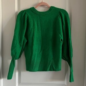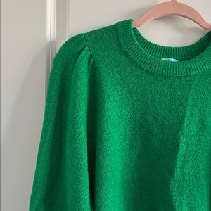 Chic crew neck sweater with puff sleeves. Vibrant green color. Ideal for stylish layering.
