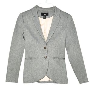 Light gray blazer from H&M. Scuba knit. Ideal for professional and casual settings. Features a tailored fit and button closure.