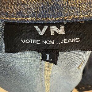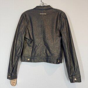 Vintage Denim Jacket Gold Embellished Rhinestone Accents Metallic Crop Western Y2K made by Votre Nom Jeans. New With Tags.