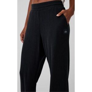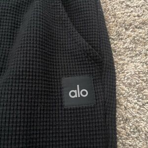 Women’s Alo Waffle Weekend Escape Mock Turtle Neck and Jogger Set Black Size S/M