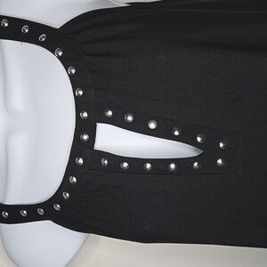 Black studded top, someone cut the tags off. I liked it but it shows my bra straps a bit. I'm XL-1X and fit a bit big so prolly 2X