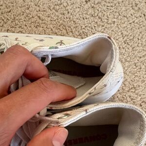 These stylish high-top sneakers feature a playful bird print, perfect for adding a fun touch to any outfit. The white base color makes them versatile and easy to match.