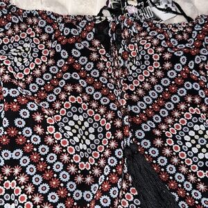 Brand new with tags, multicolored printed babydoll top with 3/4 sleeves has black liner underneath ******F