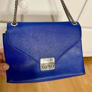 Elegant , this royal blue leather purse is a party-ready sidekick with a clean-lined profile. Crafted in Italy from genuine leather and silver chain , it's just the right size and shape to take you from dusk to dawn.