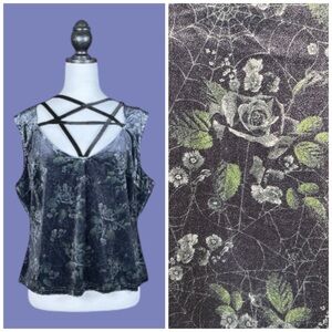 Killstar NWT Black Grey Rose Spiderweb Print Velvet Pentagram Sleeveless Top 3XL