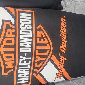 Bold and edgy Harley Davidson Black Long Sleeve Dress featuring the iconic Orange and white Logo across the front and back of the dress. Designed with a deep lace-up neckline with silver grommets for a biker-chic look. Soft, comfortable fabric makes it perfect to wear as a dress or oversized sweatshirt. Approx. Measurements are Chest 42 in,. Length 34 in. Excellent Condition.