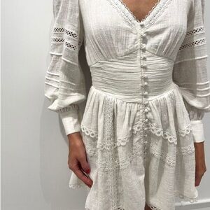 Hemant and Nandita Ruby Eyelet Guae Mini Dress Off White Medium