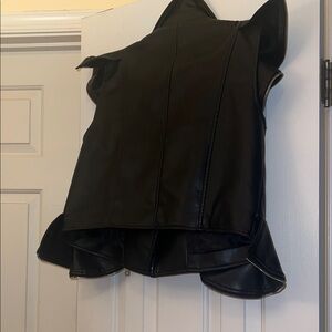 Azalea Wang Stylish Black Ruffled Faux Leather Vest XL