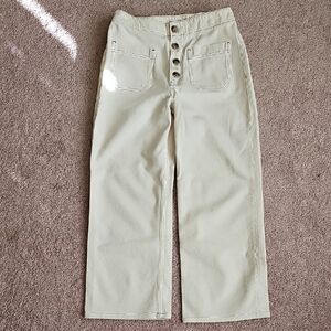 Stylish cream jeans. Ankle length. Cropped fit. Button details. 23.5in inseam