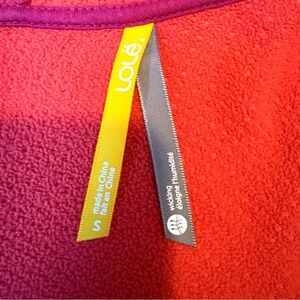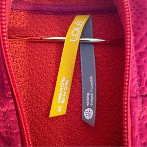 Women’s Lole dark rose pink zip-up athletic hoodie by Lole. Orange interior. Size large but fits smaller. Good condition. Measurements in the pictures. More of a pink than a red.