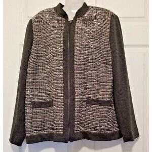Alfred Dunner Women's Jacket Metallic Gray Tweed Full Zip Long Sleeve Size 16