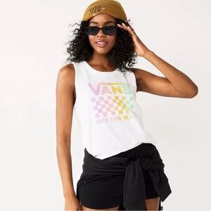Vans White and Pink Tank Top with Pastel Logo