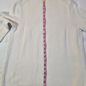Stay warm and stylish with this timeless Talbot's Turtleneck Sweater. This piece features a beautiful, intricate cable knit design on the front and a comfortable ribbed turtleneck. The Ivory cream shade is a versatile neutral, making it a perfect. Small snag and stain in photos