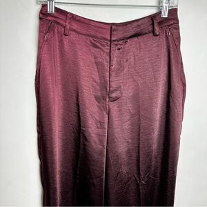 Good American Satin Pants Wide Leg Trouser Women's Size 2 or 26 Burgundy Stretch