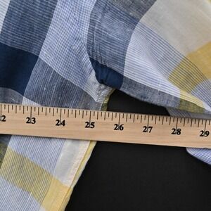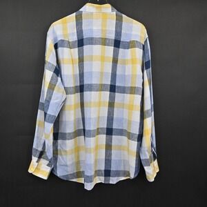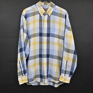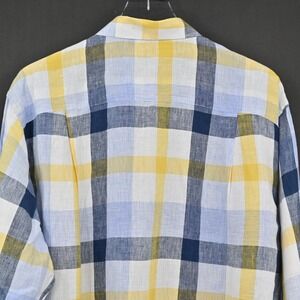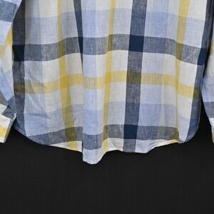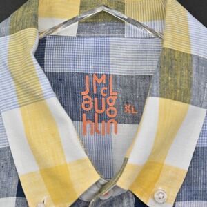 J McLaughlin Mens Plaid Collared Shirt Size XL Linen Blue Yellow Button Down