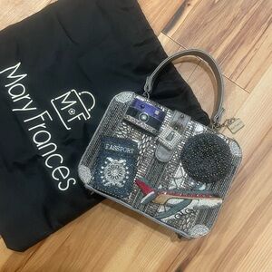 Mary Frances Multicolor Beaded Handbag Airplane Passport