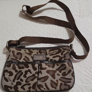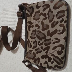 ladies cute adjustable strap with silver hardware like new nine west leopard animal.print crossbody mini handbag purse. 7 x 9.5