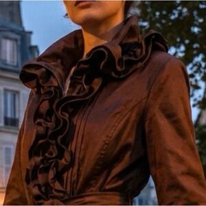 Dons Collection Ruffled Tafta Iridescent Burgundy Dress Jacket Victorian Regency
