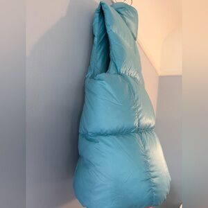 If lugging unwieldy outerwear around when the temps warm up is not your bag, meet your new favorite down vest with maximal warmth in a duffle-totable design.