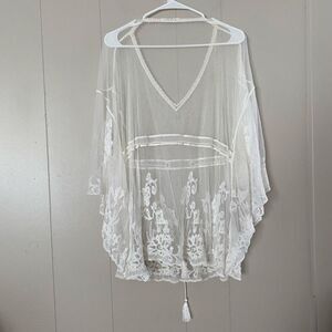 Gorgeous Forever 21 sheer lace kimono cover-up in white.