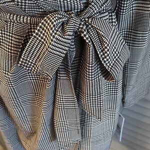 NEW Calvin Klein gray plaid houndstooth pattern wrap dress with a tie belt. Perfect for layering.
