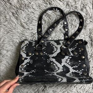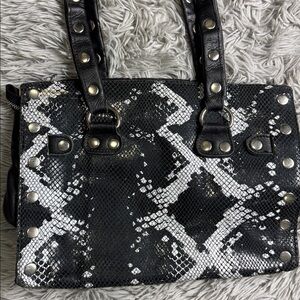 Hammitt Black and White Brentwood python snakeskin Studded Handbag