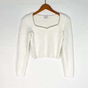 Sunday Best Elsie Sweater Sweetheart Neckline Fuzzy Knit Size Small