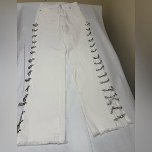 AKIRA Diamonds Metal Slit Raw Hem White Denim