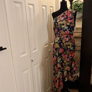 Lulu's Navy Floral One Shoulder Dress - Blue and Pink
