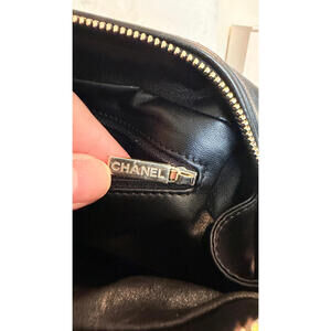 AUTHENTIC CHANEL BLACK QUILTED BOWLING BAG WITH 2-WAY CHAIN AND TOP HANDLE. GOLD HARDWARE, THE INTERIOR ZIPPER PULL STILL HAS THE PLASTIC FILM. THE BAG IS EXTREMELY CLEAN WITH NO MARKS TO THE INTERIOR OR EXTERIOR LEATHER, SOME HARDWARE SURFACE RUBBING TO THE FRONT CC LOGO.